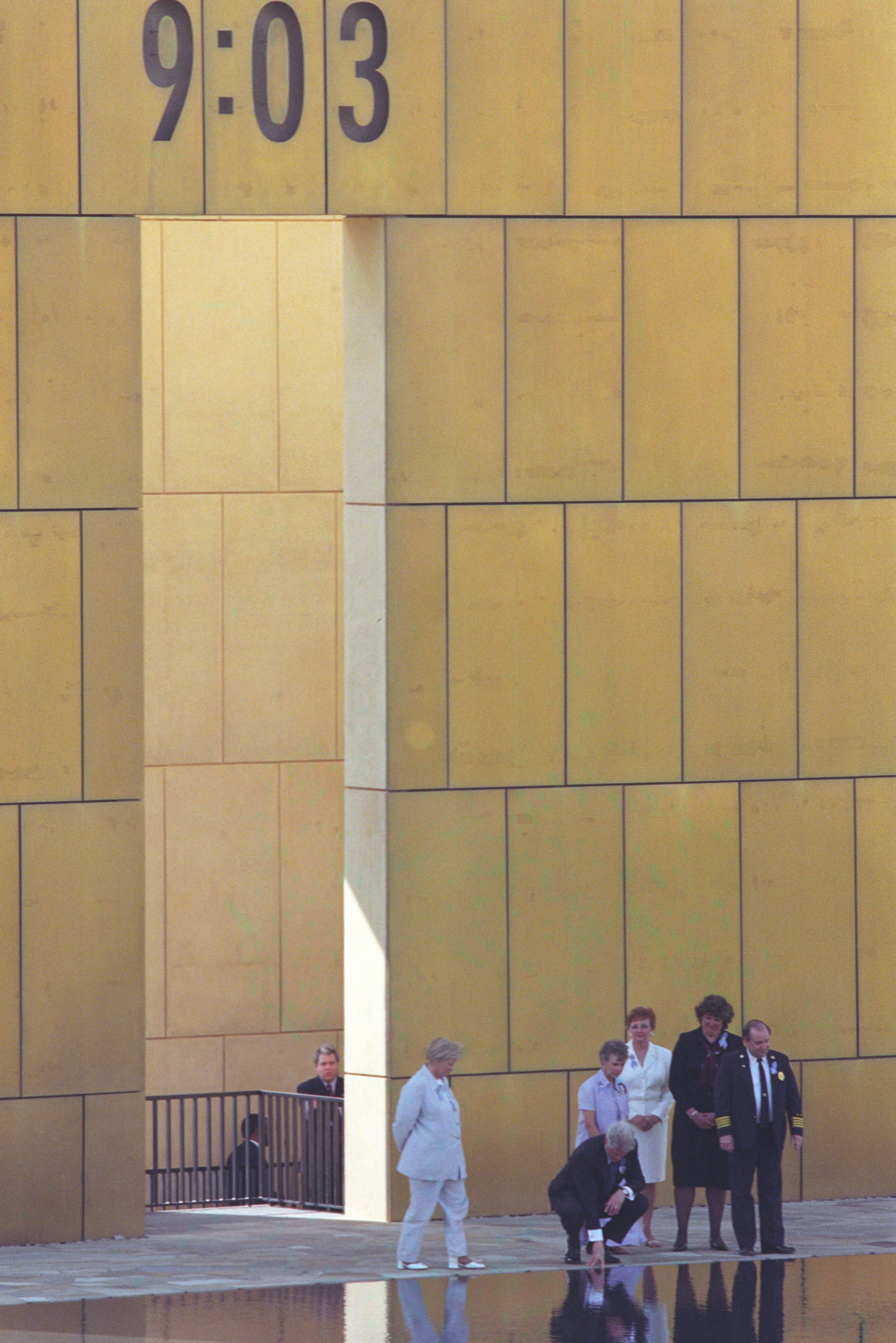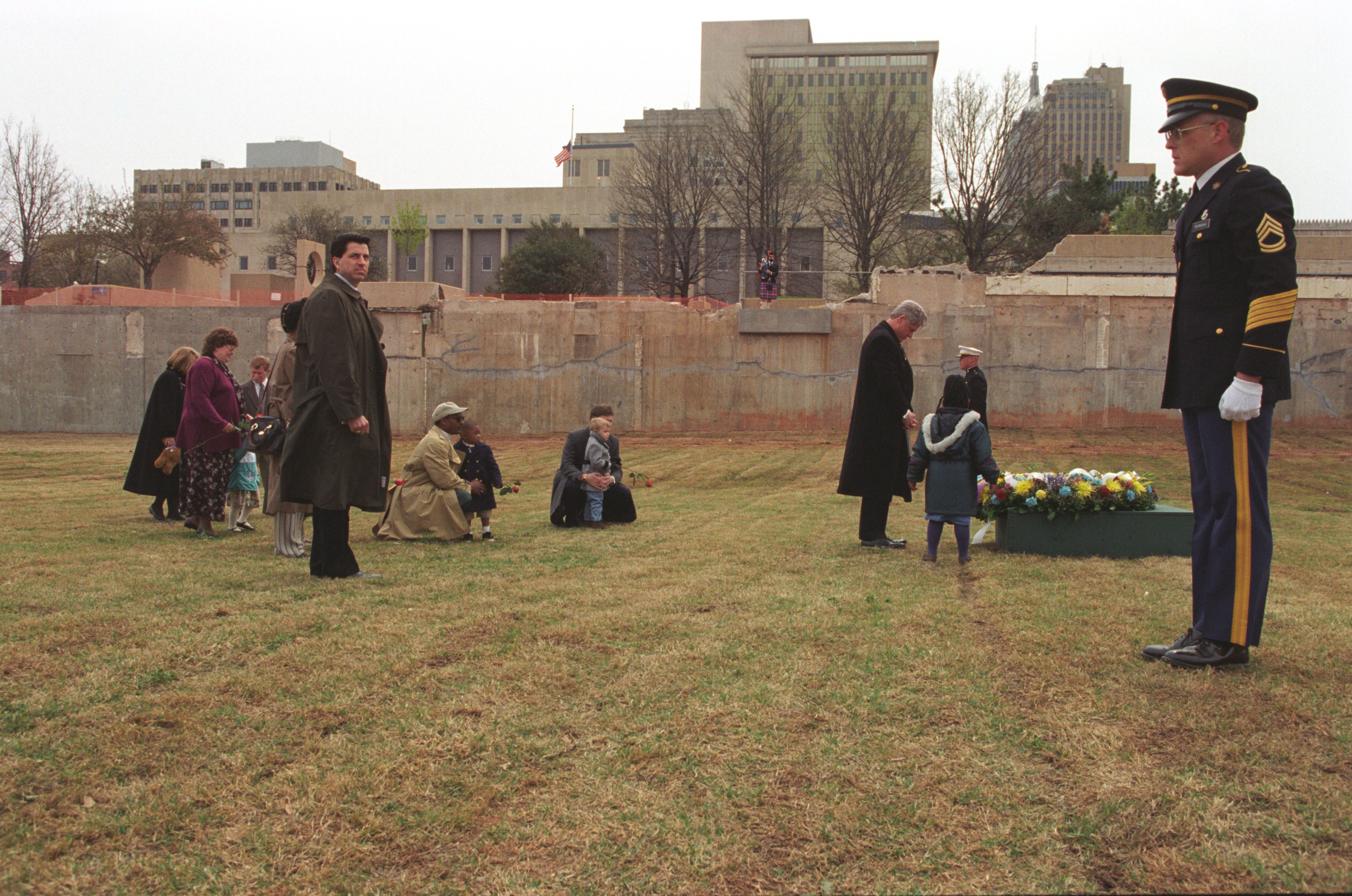 President Clinton and First Lady Hillary Rodham Clinton participate in a wreath laying ceremony with bombing survivors at the former site of the Murra...Read morePresident Clinton and First Lady Hillary Rodham Clinton participate in a wreath laying ceremony with bombing survivors at the former site of the Murrah Federal Building in Oklahoma City, April 5, 1996, Photographer: Sharon Farmer Read lessP38794-21a