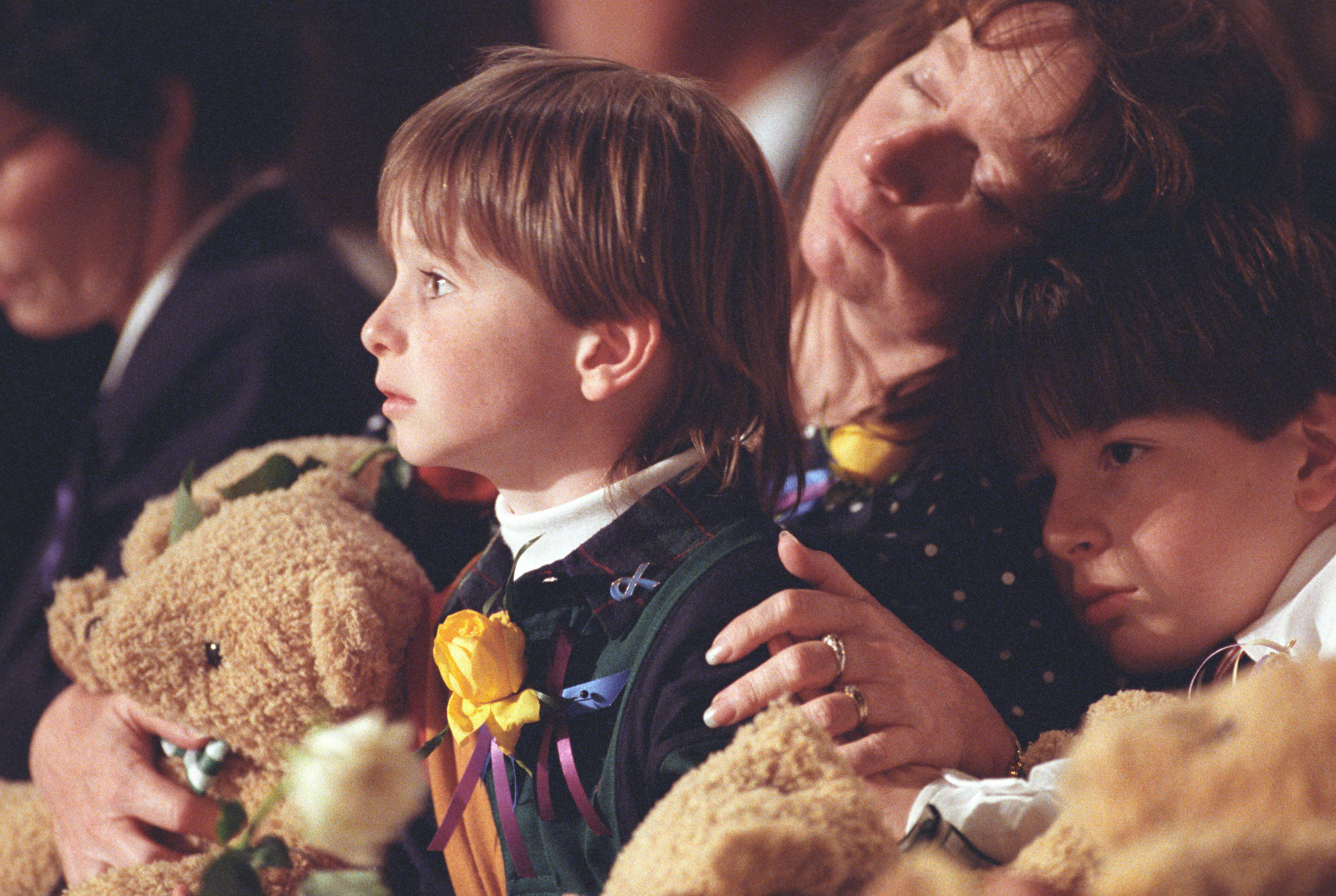 Views of a child holding a Teddy Bear at the Oklahoma City Memorial Service for victims of the Murrah Federal Building bombing, April 23, 1995, Photog...Read moreViews of a child holding a Teddy Bear at the Oklahoma City Memorial Service for victims of the Murrah Federal Building bombing, April 23, 1995, Photographer: Sharon Farmer. Read lessP27050-30