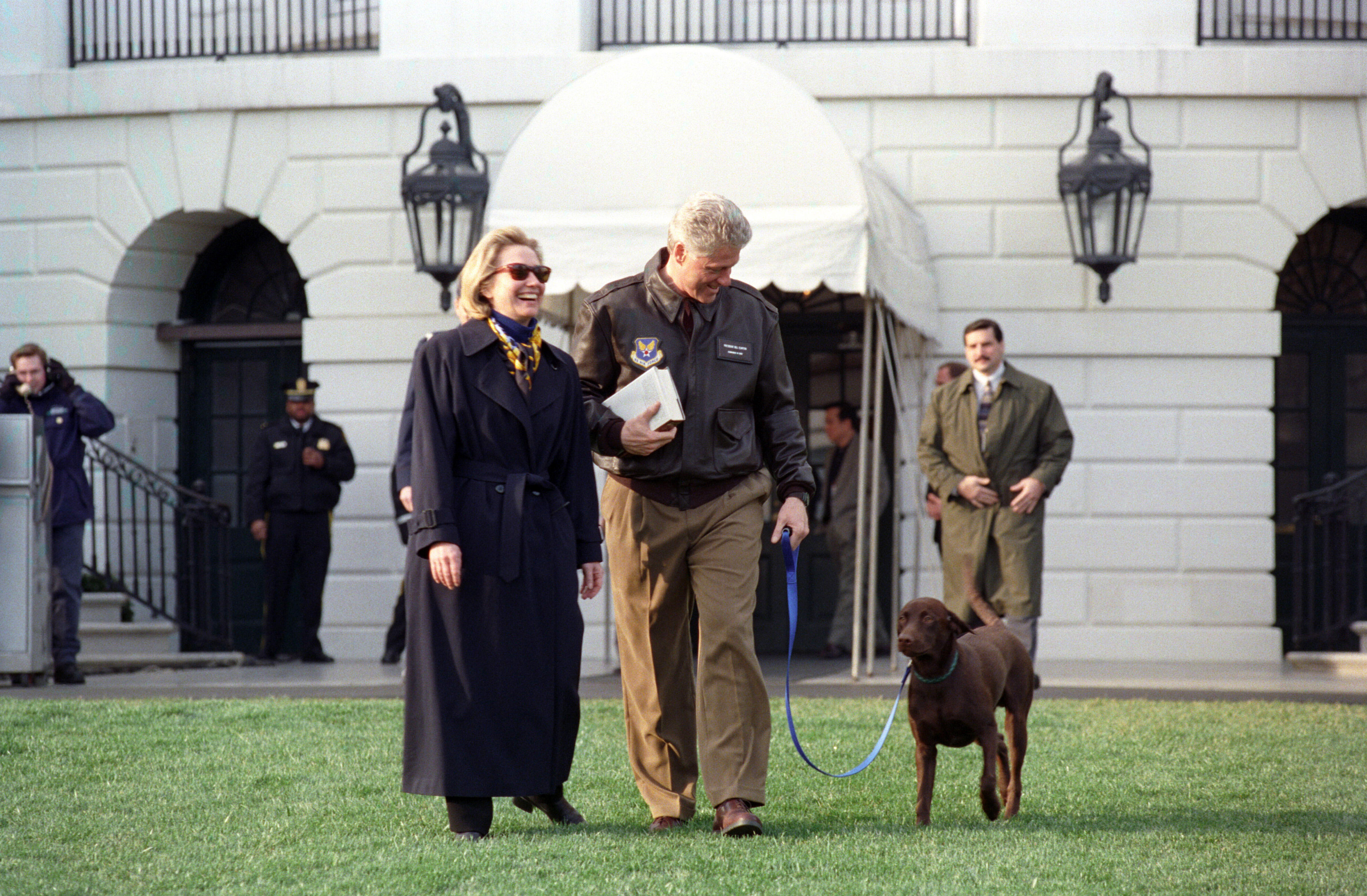 Hillary Rodham Clinton pets Socks with President Clinton on the lawn of the South Grounds of the White House, February 24, 1997, Photographer: Barbara...Read moreHillary Rodham Clinton pets Socks with President Clinton on the lawn of the South Grounds of the White House, February 24, 1997, Photographer: Barbara Kinney. Read lessP50470-08a