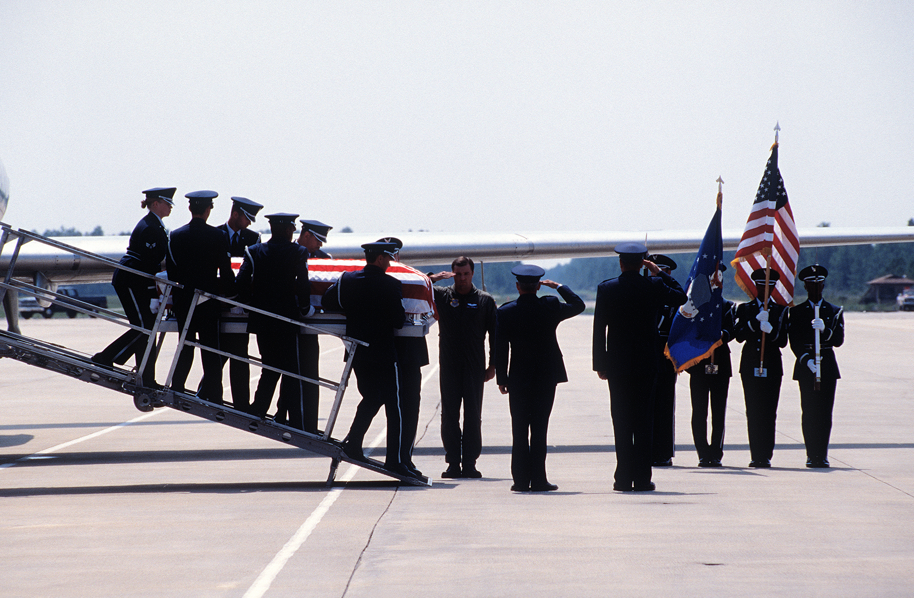 After a bombing in the World Trade Center parking lot in 1993, al Qaida’s actions against the United States continued to escalate. On August 7, 1998, near simultaneous truck bombs exploded at the American Embassies in Dar-es-Salaam, Tanzania and Nairobi, Kenya. 224 people died, and around 5,000 were wounded. The FBI was able to quickly link the attacks to bin Laden's al Qaida organization. In retaliation, President Clinton ordered airstrikes against sites linked to bin Laden in Sudan and Afghanistan. However, this action failed to kill bin Laden or neutralize al Qaida. In November 1998, the United States indicted bin Ladin and 21 other accomplices for the attacks. The Clinton Library has the following collections regarding the East Africa Bombings and the Clinton Administration’s response: A USAF Honor Guard team of pallbearers carries the flag draped coffin, which contains the remains of USAF SENIOR MASTER Sergeant (SMSGT) Sherry Lynn Olds, down the aircraft ramp and onto the flight line at Tyndall AFB, Florida. SMSGT Olds was killed in the terrorists bombing attack on the US Embassy in Nairobi, Kenya on August 07, 1998. August 13, 1998, Photographer: Lisa Carroll. View in the National Archives Catalog A USAF Honor Guard team of pallbearers carries the flag draped coffin, which contains the remains of USAF SENIOR MASTER Sergeant (SMSGT) Sherry Lynn Olds, down the aircraft ramp and onto the flight line at Tyndall AFB, Florida. SMSGT Olds was killed in the terrorists bombing attack on the US Embassy in Nairobi, Kenya on August 07, 1998. August 13, 1998, Photographer: Lisa Carroll. 2007-1596-F: This collection consists of materials related to the suicide bombings of the United States Embassies in Dar Es Salaam, Tanzania and Nairobi, Kenya on August 7, 1998 and the subsequent August 20, 1998 Operation Infinite Reach airstrikes against suspected al Qaida facilities in Afghanistan and Sudan. The records include reports, memoranda, correspondence, and press materials regarding the bombings, Operation Infinite Reach, and the emergency supplemental funding that Congress passed to cover medical expenses, victim compensation, and additional embassy security measures. View collection finding aid for 2007-1596-F 2007-1610-F: This collection consists of materials regarding Mullah Mohammad Omar, the founder and spiritual leader of the Taliban, and Osama bin Laden. Under Omar’s direction, the Taliban provided sanctuary to al Qaida and its leader Osama bin Laden despite demands by the United Nations Security Council that he be handed over for trial for his involvement in the 1998 U.S. Embassy bombings in Nairobi, Kenya and Dar es Salaam, Tanzania. The collection includes news articles and press briefings regarding the Taliban’s refusal to turn over bin Laden and the resulting United Nations sanctions. View collection finding aid for 2007-1610-F 2007-1631-F: This collection consists of records related to terrorism in Afghanistan from 1994 through 2001. The collection contains National Security Council (NSC) cables, emails, and Records Management System numbered documents. The records concern United Nations resolutions regarding the deteriorating conditions in Afghanistan, the impact of the Taliban’s rule on Central Asia, foreign press coverage of the proliferation of terrorist groups, Congressional correspondence, international meetings, and reaction to the 1998 United States airstrikes. View collection finding aid for 2007-1631-F 2009-1291-M: These Clinton Presidential Records were declassified in response to a Mandatory Declassification Review request for documents related to United States military operations or air strikes against targets in Afghanistan and Sudan in 1998. View digitized records for 2009-1291-M Release A View digitized records for 2009-1291-M Release B View digitized records for 2009-1291-M Release C